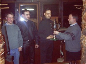 Sieben Mannschaften traten zum Wettkampf an und zwängten sich in den kleinen Millener Schiessraum. Drei Mannschaften: Wehr, Millen und Tüddern blieben nach den beiden Standard Durchgängen fehlerlos und mussten ins Stechen. Nach zwei fehlerfreien Kabelrunden einigte man sich auf einen Endkampf auf 10er Ringscheiben. Wehr trat stark ersatzgeschwächt mit zwei Schülern, Markus Mainz und Philipp Heynen und einem reaktivierten Veteran Willi Heynen an. Trotzdem kämpften sie sich ins Finale. Hier setzte sich dann die Erfahrung durch. Jeweils 29 Ringe erzielten Millen und Tüddern, Wehr erreichte nur 25. Die beste 10 von Ralf Gerards entschied dann den Sieg für Millen, die den Pokal jetzt wieder zweimal in Folge gewonnen haben.