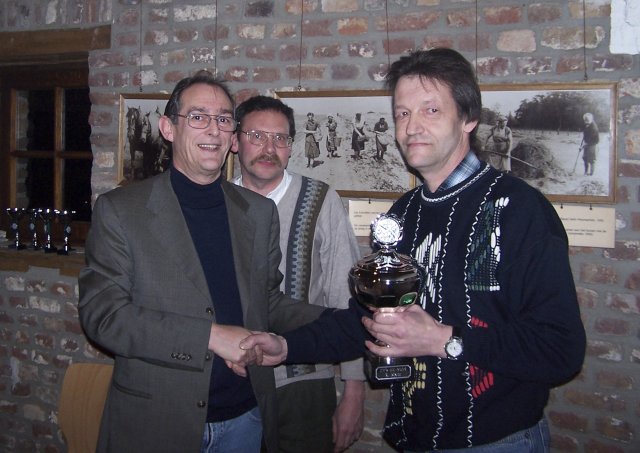 Siegerehrung KK-Zwischenrunde 2004-2005Liebe Schießsportfreunde, Die Siegerehrung der diesjährigen Kleinkaliber-Zwischenrunde im Dekanat Gangelt-Selfkant fand am 04. März. 2005 in der Zehntscheune in Millen statt. Nahezu 100 Schützen der 35 Mannschaften aus 18 Bruderschaften des Dekanatsverbandes Gangelt-Selfkant und 2 Gastbruderschaften aus dem Schützenbezirk Heinsberg (Waldfeucht und Aphoven), die ebenfalls an den Wettkämpfen teilgenommen hatten, waren bei der Siegerehrung vertreten. Dekanatsschießmeister Norbert Küppers aus Waldenrath, der die Wettkämpfe bereits seit 22 Jahren leitet und die Siegerehrung vornahm, sowie seine beiden Stellvertreter Manfred Craenen aus Breberen und Karl-Heinz Welter aus Höngen und der gastgebende Schützenpräsident Anton Boden von der siegenden St. Quirinus Schützenbruderschaft Millen, freuten sich den Siegern schöne Siegerpokale und den übrigen teilnehmenden Mannschaften Erinnerungspokale überreichen zu können. Die Abschlusstabelle sowie einige Fotos von der Siegerehrung sind anliegend beigefügt. Für eine Veröffentlichung wäre ich sehr dankbar Mit freundlichen Grüßen Norbert Küppers, Dekanatsschießmeister