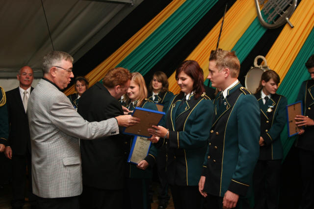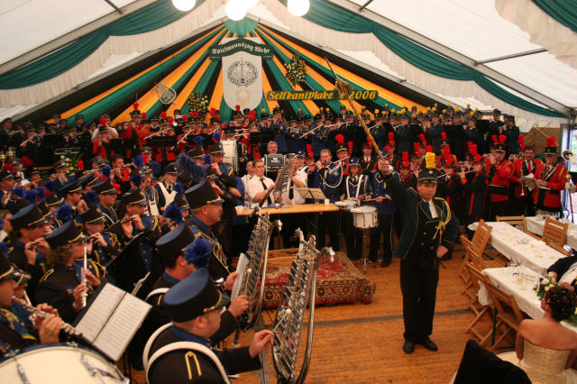 In diesem Jahr gab es zur Wehrer Kirmes ein volles Programm: Am Freitag Abend startete die 4. große 80-Cent-PartyFast 1000 Jugendliche vergnügten sich im riesigen Festzelt bei toller Disco-Musik und Dumping-Preisen bis spät nach Mitternacht. Am Samstag Abend gab es gleich 2 Besonderheiten: Zum einen stellte sich auf dem traditionellen Königsball unser neues Königspaar Georg und Marion Wagemanns vor. KönigsballZum anderen wurde zahlreiche Mitglieder des Spielmannszuges Wehr für Ihre langjährige Mitgliedschaft geehrt. JubilarehrungAm Sonntag hatten wir ebenfalls volles Programm; so startete der Festzug mit der Präsentation des neuen Königspaares bereits um 14:00 Uhr. Gleichzeitig war es aber auch der Festzug des Spielmannszuges aus Anlass des 85-jährigen Bestehens mit 20 Gastvereinen. FestzugNach der Großen Parade mit allen beteiligten Vereinen folgte das Wertungsspiel im Festzelt. Das besondere Highlight war hier die Ausspielung der SelfkantplaketteDie Entscheidung war äußerst knapp, die drei Top Vereine lagen nur 6,5 Punkte auseinander. Es war nicht nur der Heimvorteil, der den Spielmannszug Wehr zum Sieger kürte. Einer der Wertungsrichter vermerkte auf dem Bewertungsbogen: "So wird Musik gemacht".